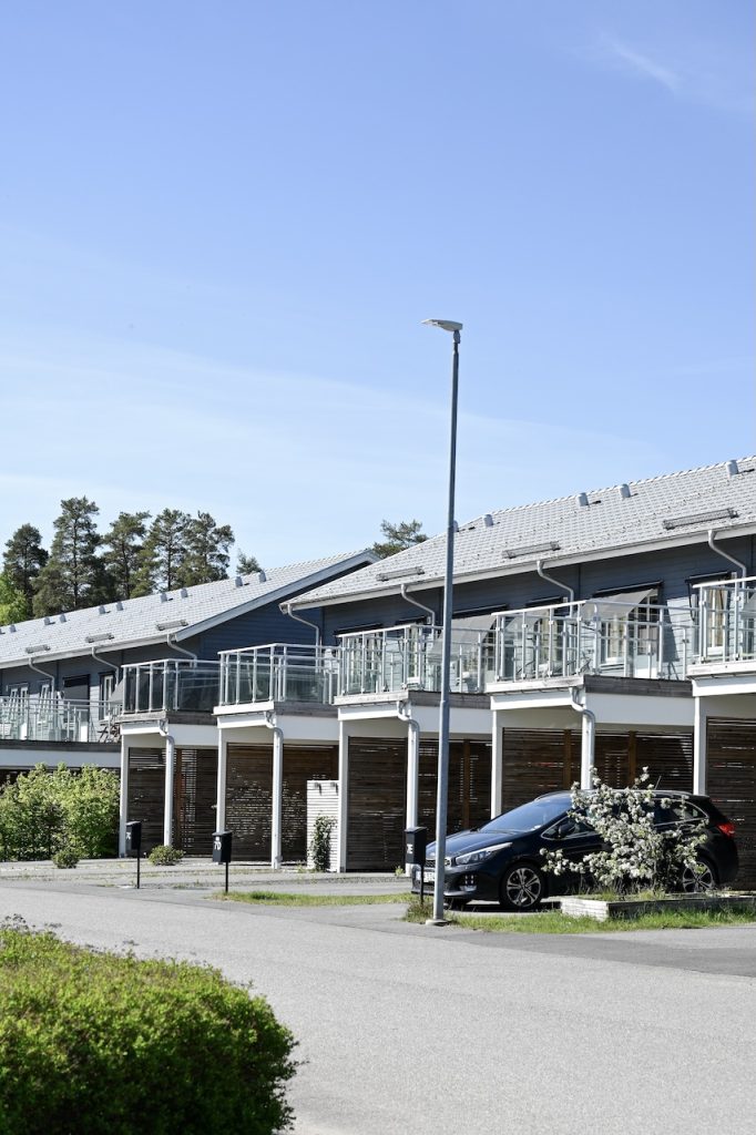 Kaveldunsvögen utmärker sig med sin stilrena och moderna design. Varje radhus har en genomtänkt planlösning med en smart fördelning av ytor. En av de mest imponerande funktionerna är carportarna, som kommer med balkonger direkt anslutna till sovrummen. Dessa balkonger, utrustade med eleganta glasräcken i rostfritt material, ger inte bara en fantastisk utsikt över området, utan skapar även en perfekt plats för avkoppling och socialisering med familj och vänner.